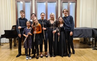 The flute ensemble included collaboration with Slovenian flute students: Manja Moškrič, 1st year, Manca Fajdiga, 2nd year and Jana Ilić, 3rd year of Koper Gymnasium – music program.